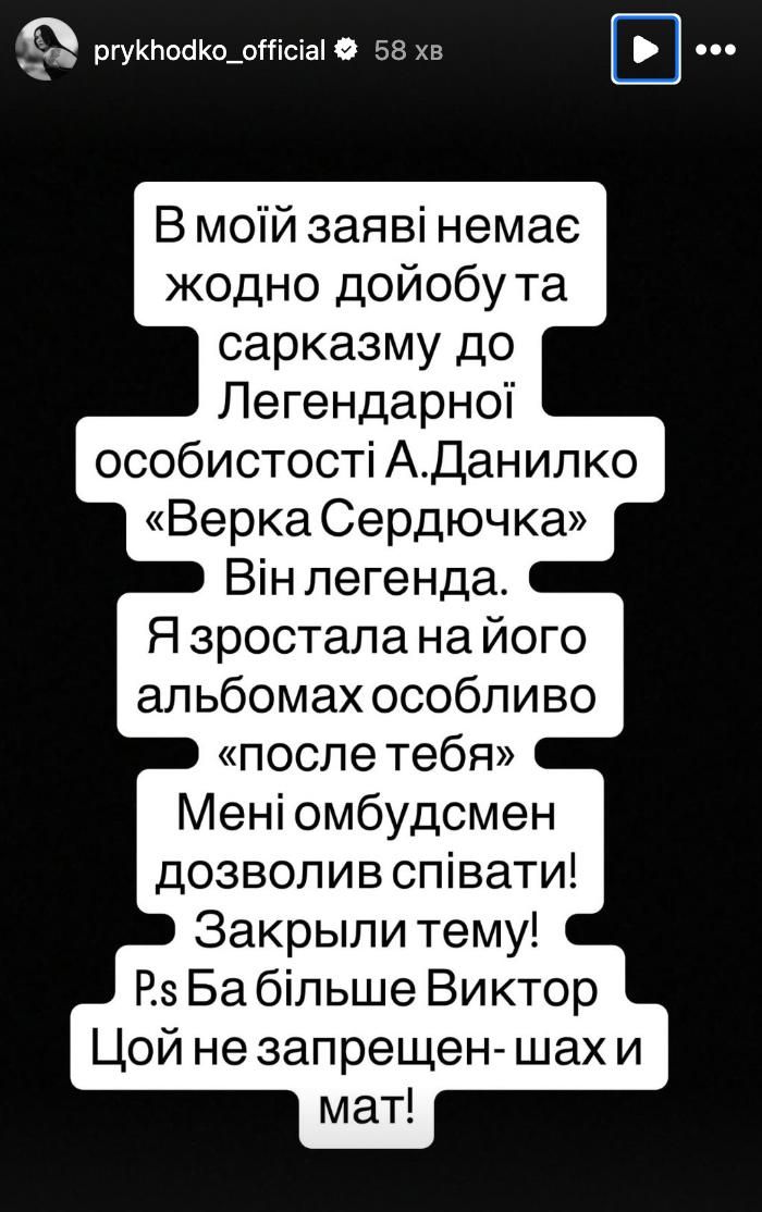 В то же время другую позицию озвучила Анастасия Приходько. Сообщает Show 24 со ссылкой на инстаграм-страницу певицы.