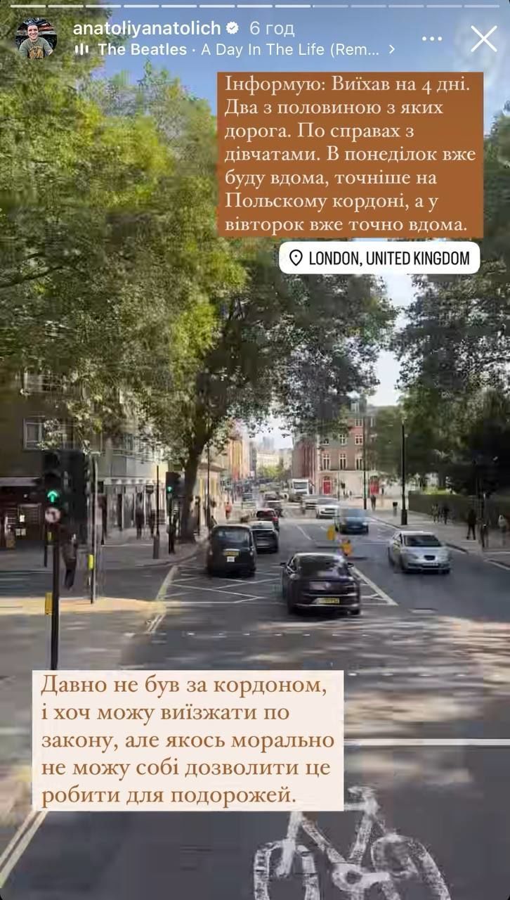 Анатолий Анатолич в Лондоне / Фото из инстаграм-сториз