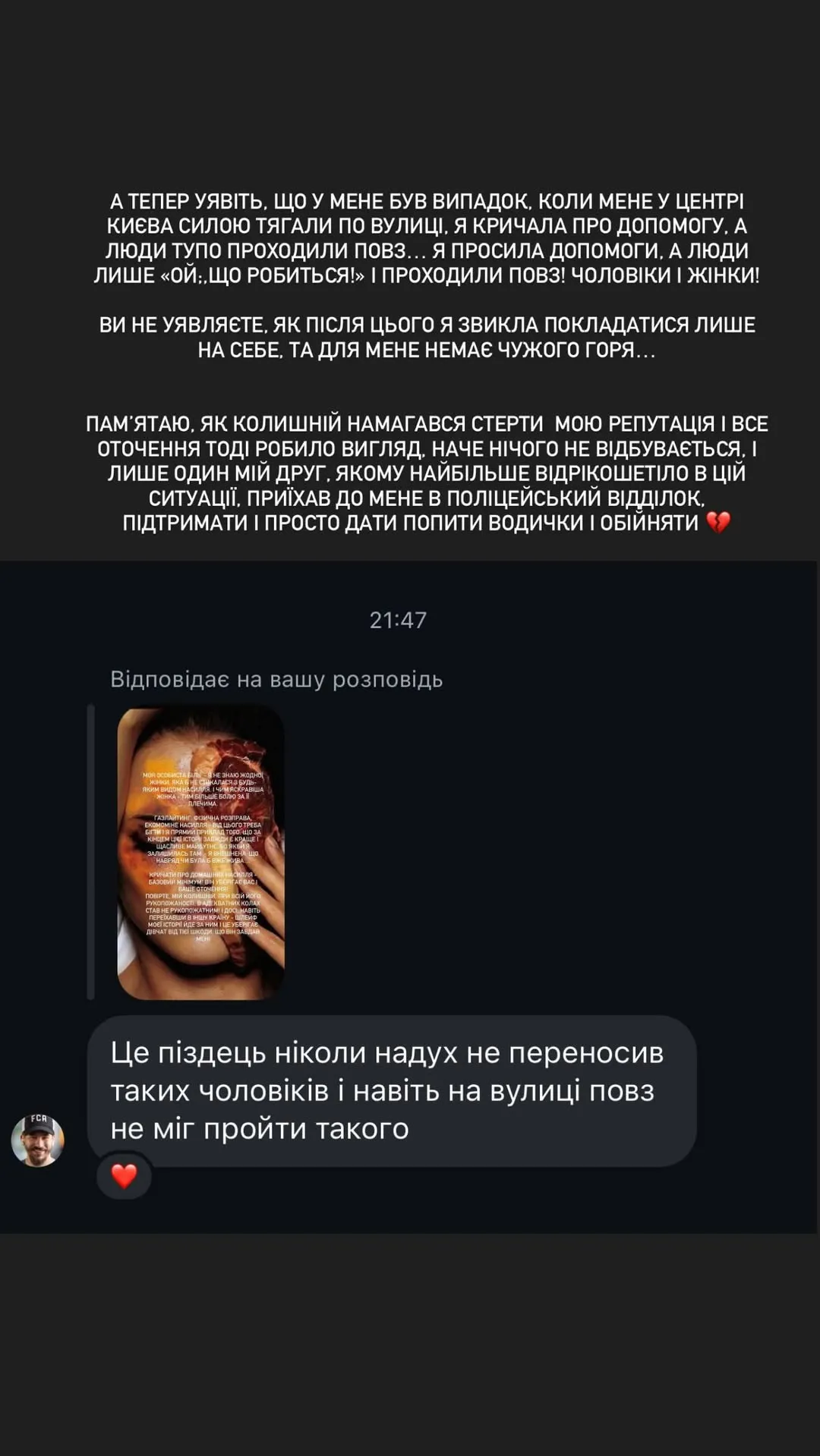 Анна Неплях вспомнила историю, как стала жертвой нападения в центре Киева. Она просила о помощи, но люди проходили мимо. С тех пор модель привыкла полагаться только на себя.