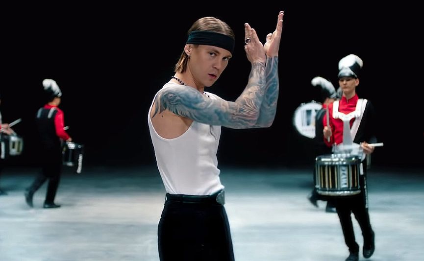В клипе на загаданную песню певец предстал с обновленным стилем – волосы под каре, повязка на голове и еще больше татуировок.