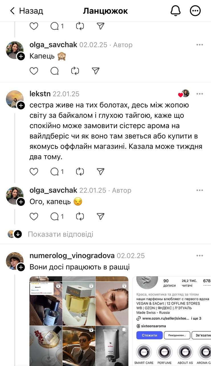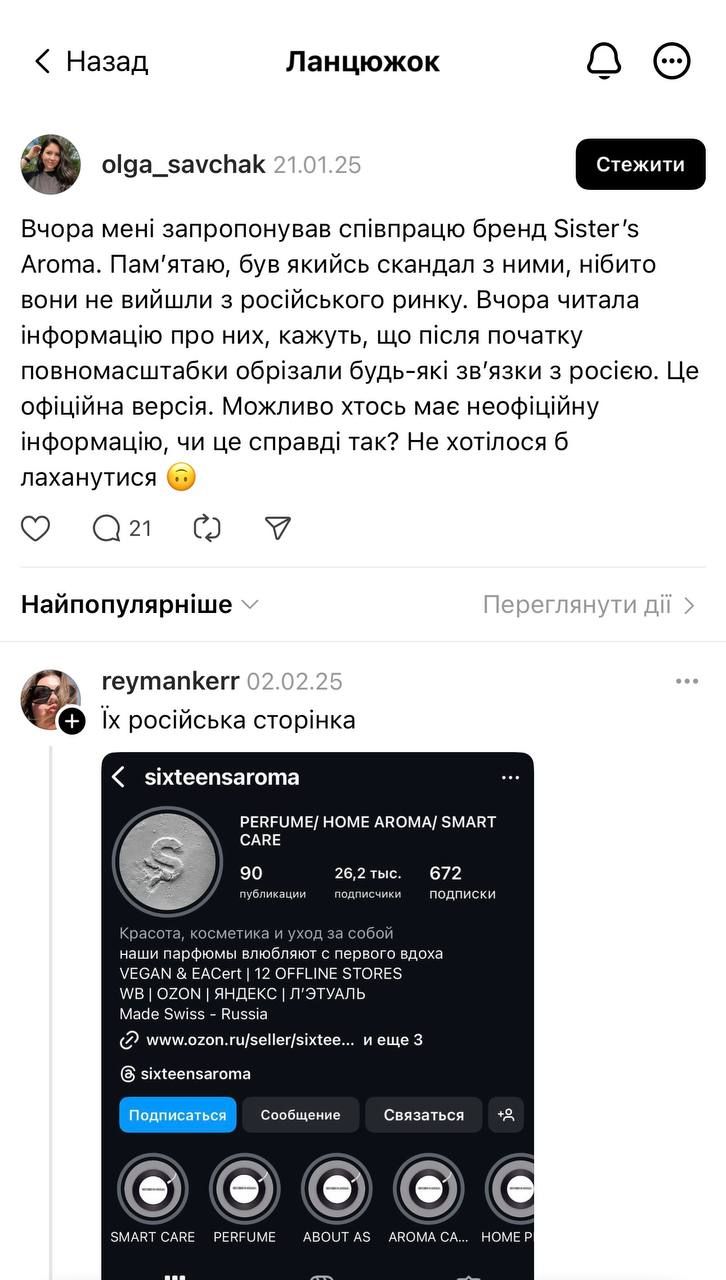 В сети критикуют бренд Sister's Aroma / Скриншоты с Threads