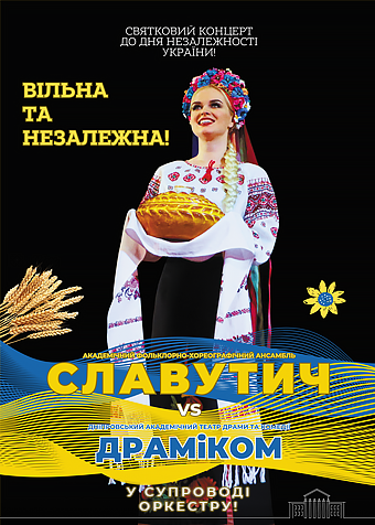 Праздничный концерт объединит два мощных коллектива – Академический фольклорно-хореографический ансамбль "Славутич" и Днепровский академический театр драмы и комедии "ДРАМИКОМ" в сопровождении оркестра. На художественном событии зритель имеет возможность насладиться энергией украинского танца, выразительным театральным словом, живой музыкой.