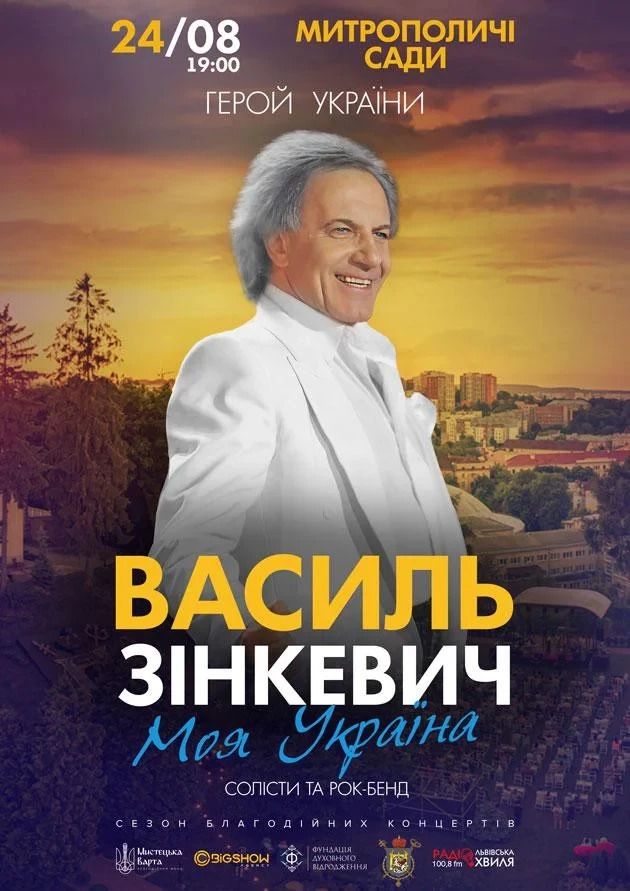 Легендарный музыкант Василий Зинкевич, золотой голос отечественной эстрады, приглашает на праздничный концерт. К нему присоединится рок-бэнд и яркие солисты. В программе – хиты украинской эстрады: "Червона рута", "Гуцулка Ксеня", "Два кольори" и многие другие.