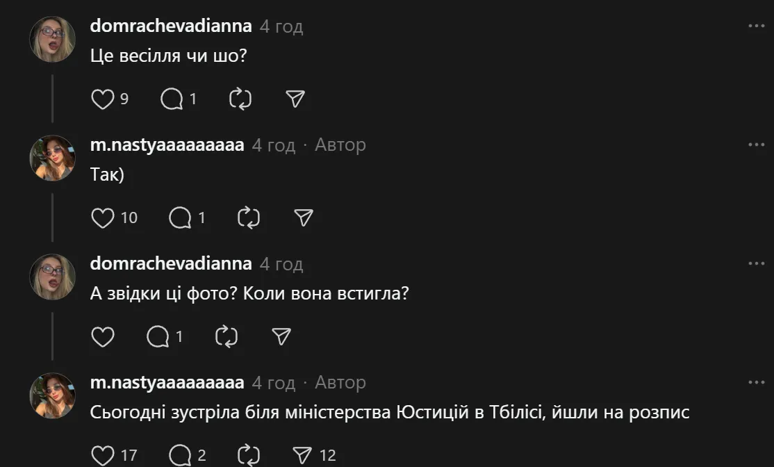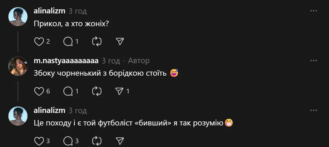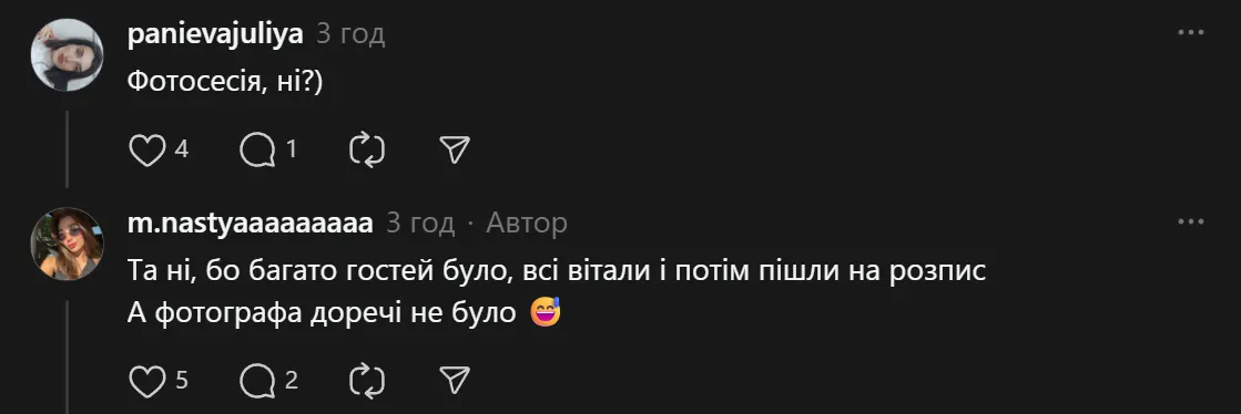В комментариях пользователи предположили, что это могла быть рекламная съемка для бренда, однако Anastasiia Myrhorodska утверждает, будто пару поздравляли с праздником, а фотографа не было.