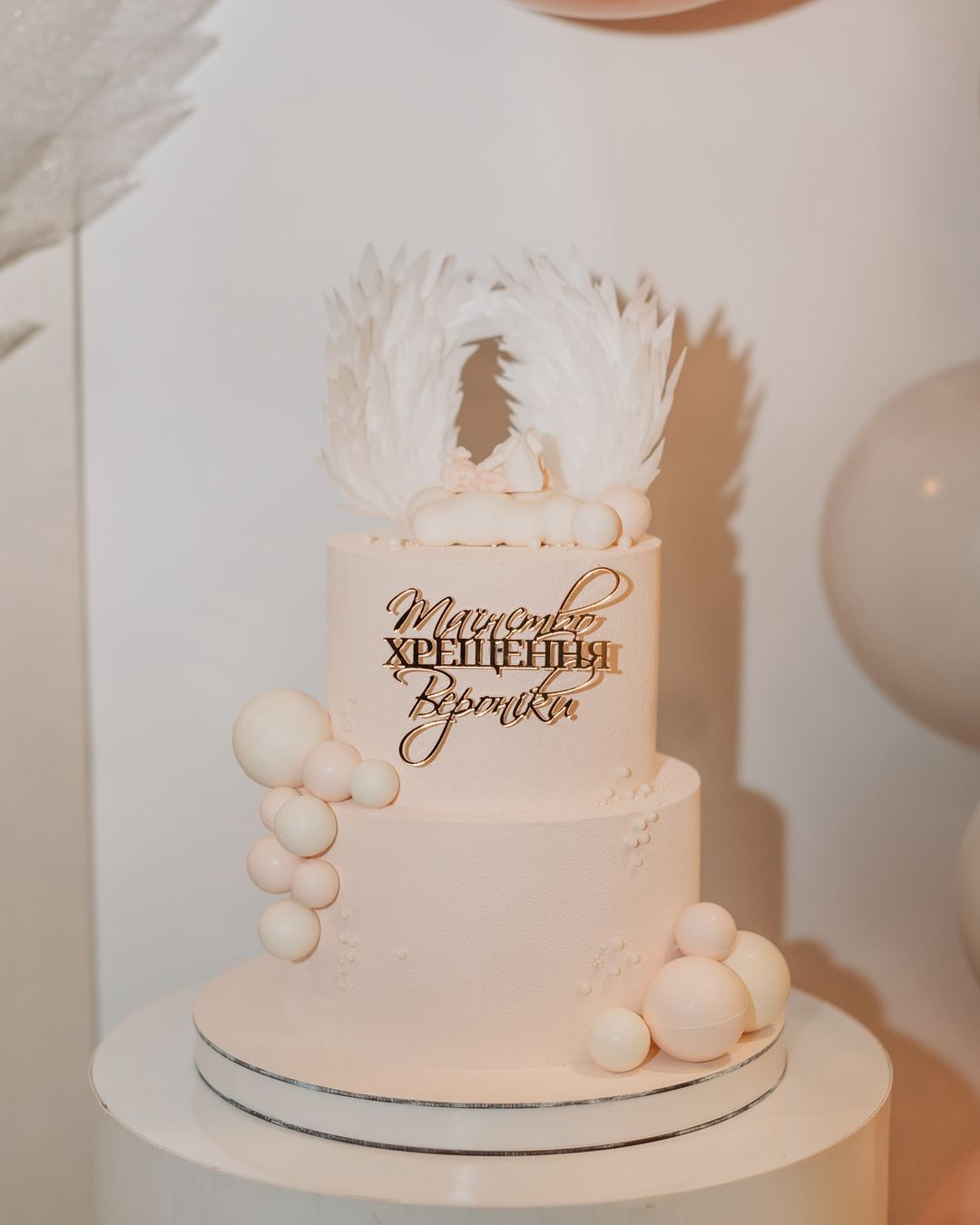 Яна Макогон к тому же показала, как они отпраздновали крещение Вероники. На фотографиях можно увидеть праздничный стол, фотозону и тортик.