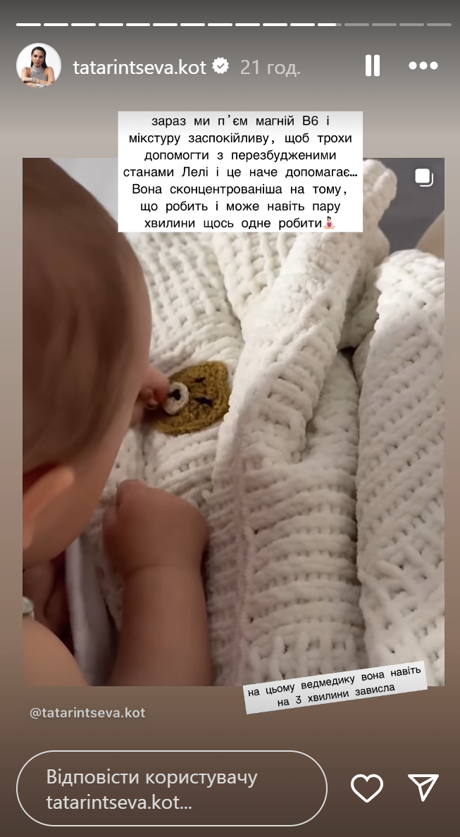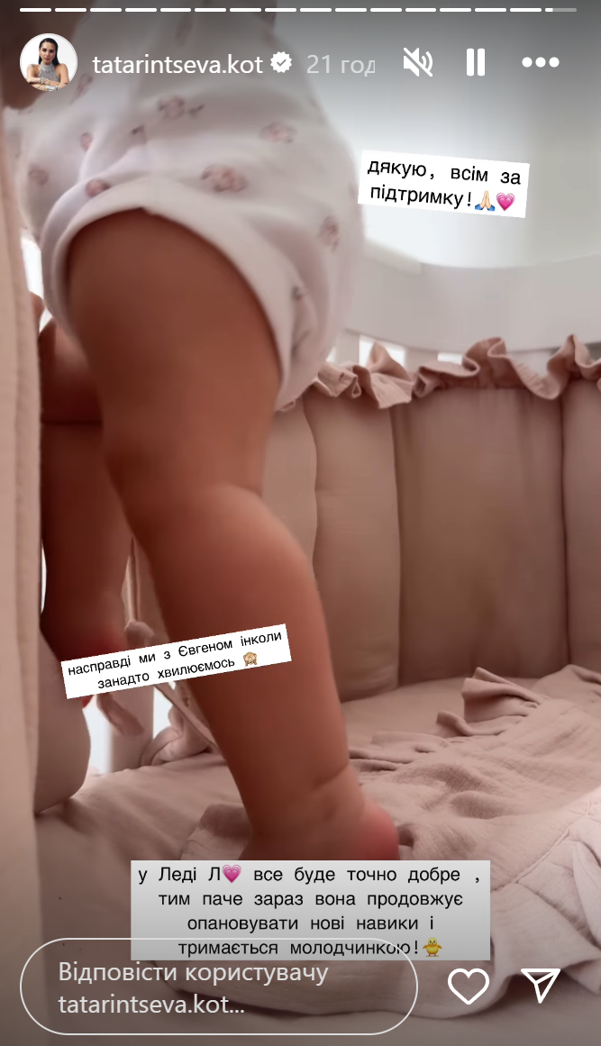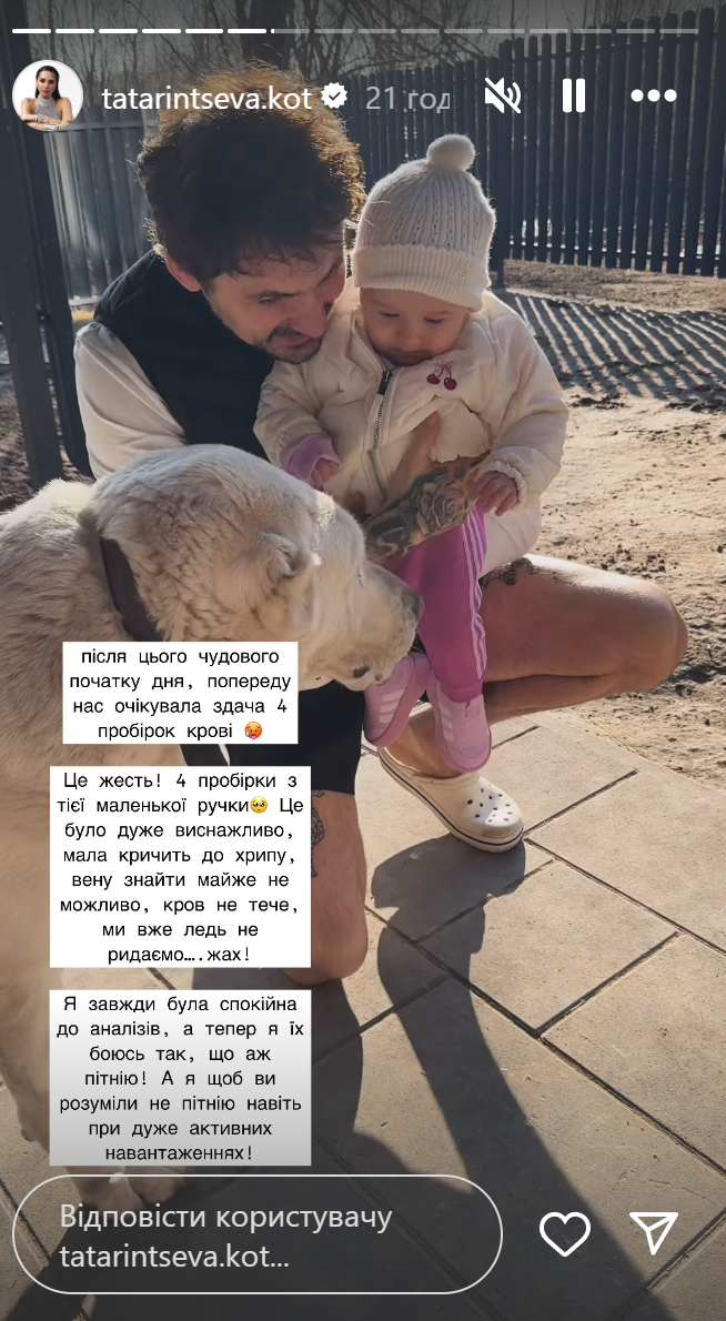 Жена Евгения Кота рассказала о проблемах со здоровьем у их дочери / Скриншоты из инстаграм-сторис