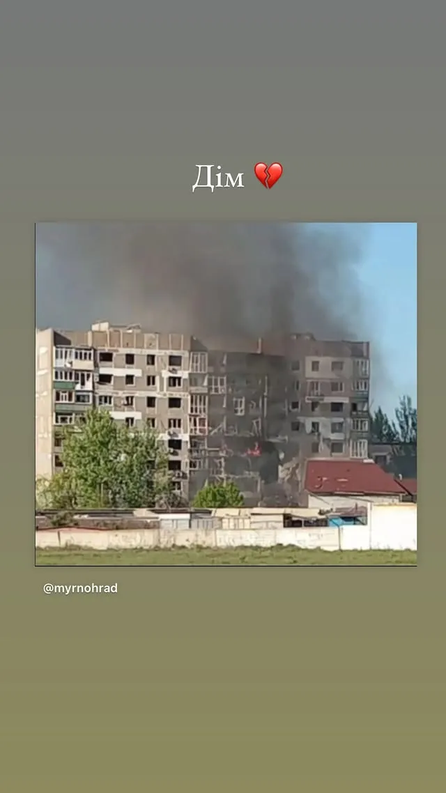 Певица показала фото, где видны последствия обстрелов Мирнограда. Ракета попала в многоэтажку в микрорайоне Светлый, где проживала Кристина.