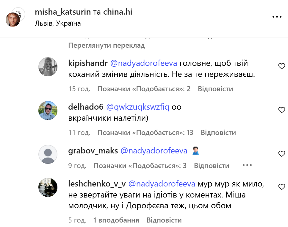 Надя Дорофеева поддержала мужа / Скриншот из инстаграма