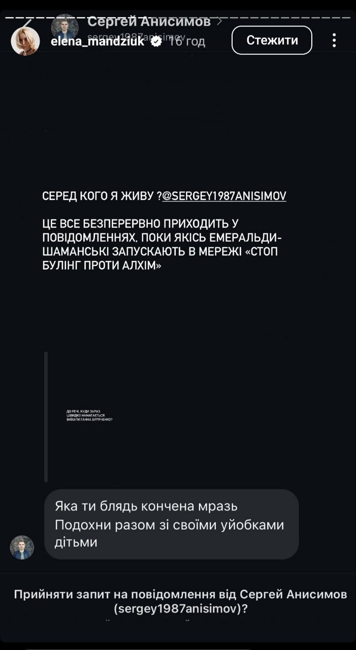 Елена Мандзюк о скандале с Анной Алхим / Скриншот из инстаграма