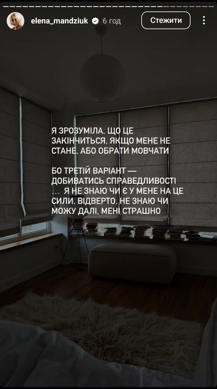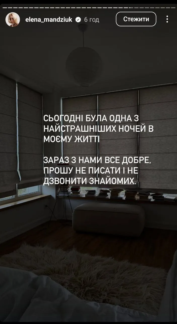 Елена Мандзюк заявила, что сегодня была одна из самых страшных ночей в ее жизни / Скриншот из инстаграма