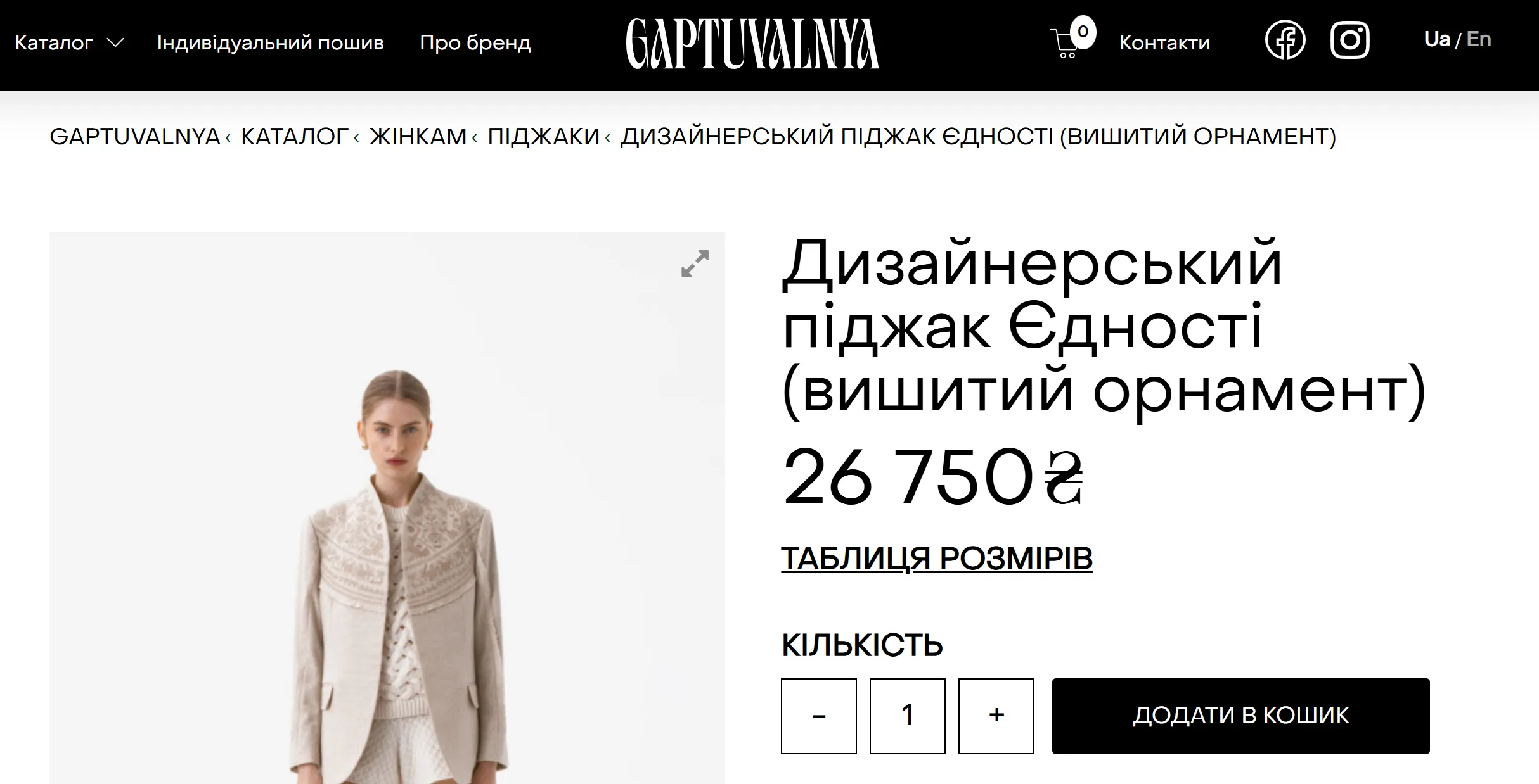 Дизайнерский пиджак Единства / Скриншот с сайта Gaptuvalnya