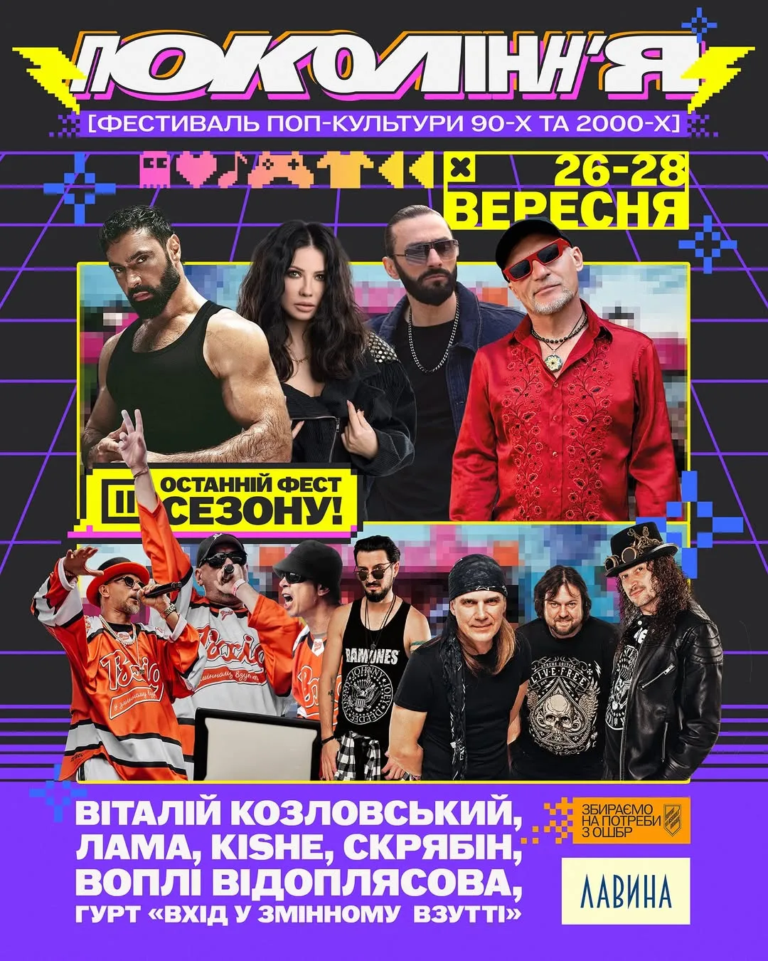 Локацией фестиваля "Поколение" станет комплекс "Лавина". Программа будет включать концерты артистов Виталия Козловского, LAMA, KISHE и групп "Скрябин", "Вхід у змінному взутті" и "Воплі Відоплясова".
