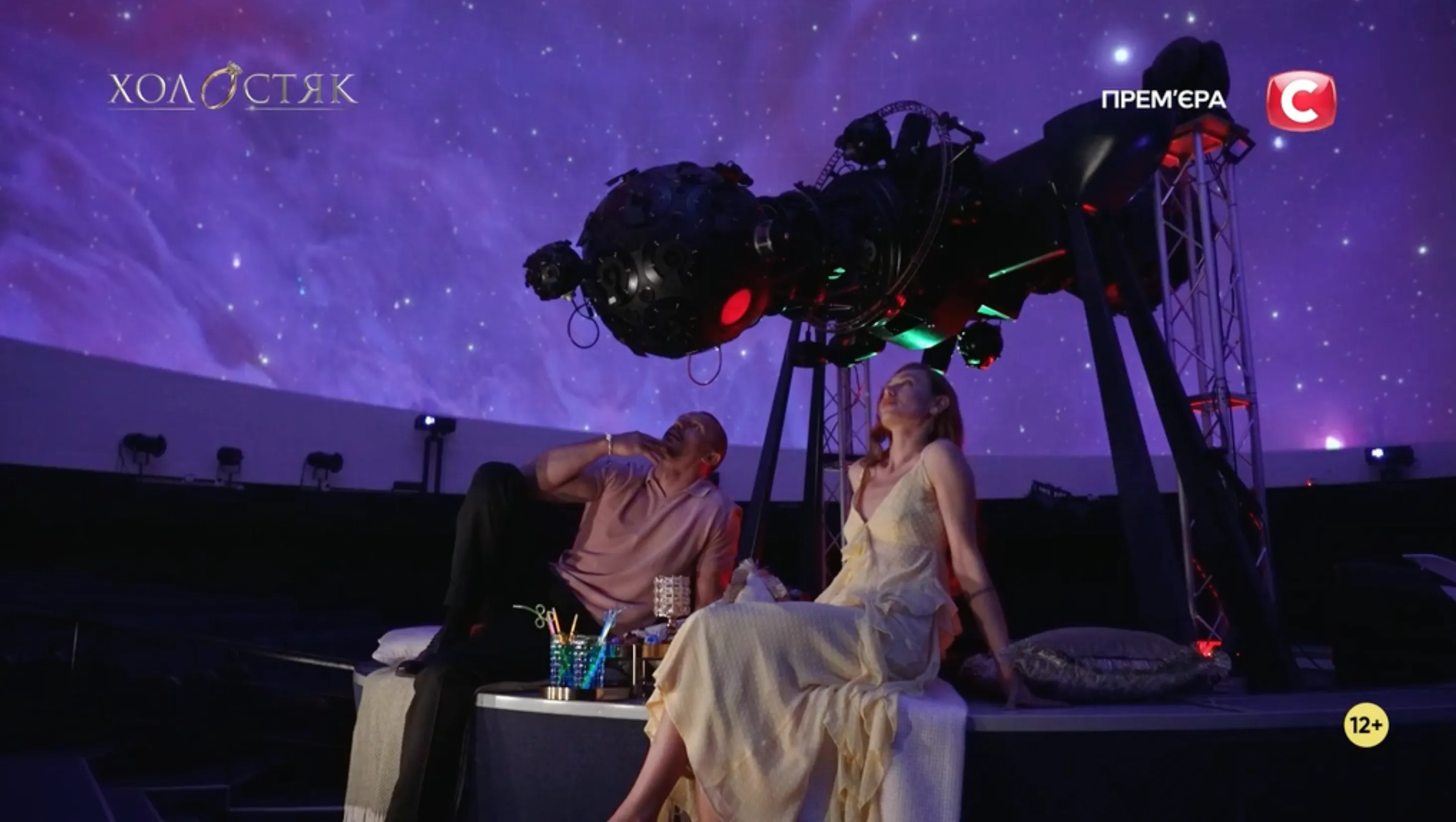 На первое свидание в новой серии отправилась Надин. "Холостяк" пригласил ее в Киевский планетарий на "пикник". Они общались в зале, где полная темнота, – видно только звезды.