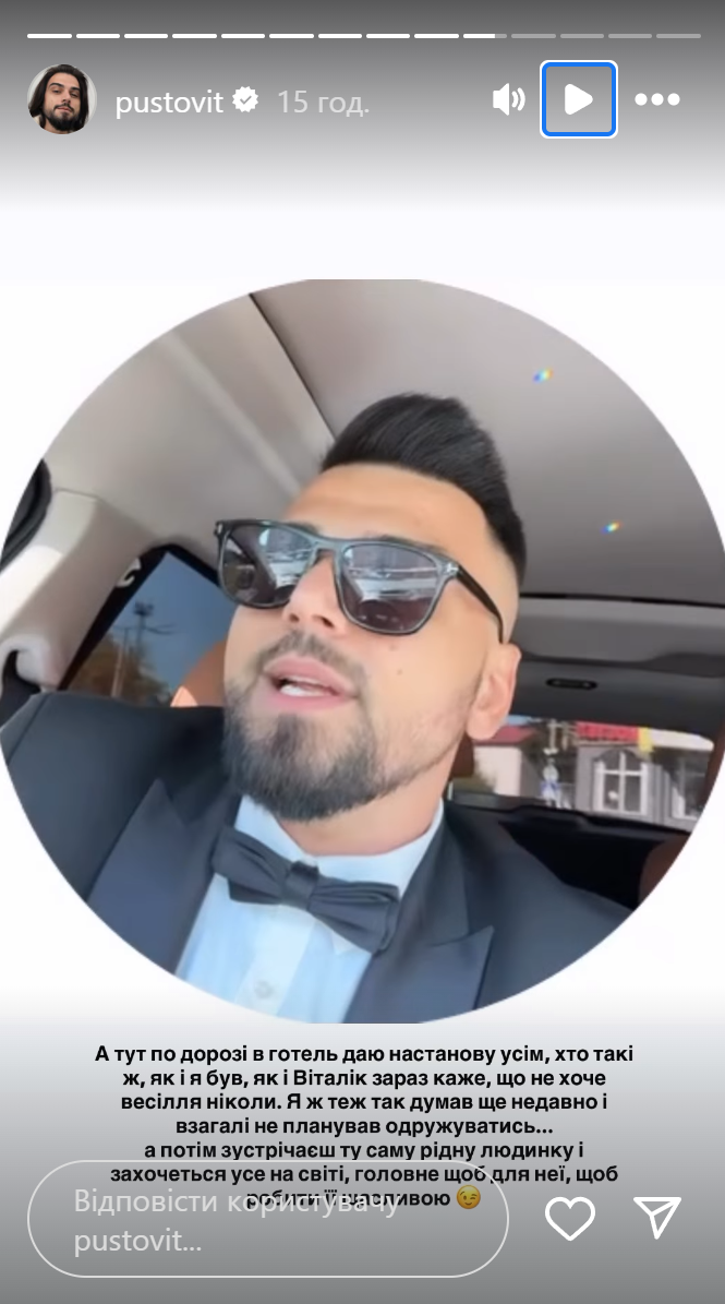 Игорь Пустовит женился во второй раз / Скриншоты из инстаграм-сторис