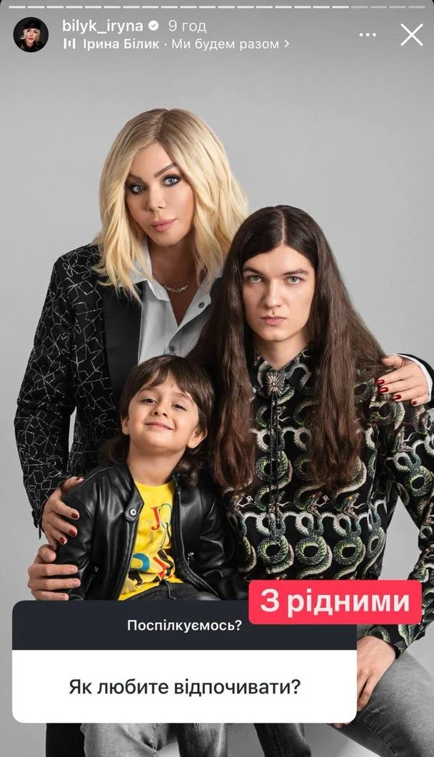 У Ирины Билык поинтересовались, как она любит отдыхать. Певица ответила, что с родными, и опубликовала фотографию с двумя сыновьями – старшим Глебом и младшим Табризом.