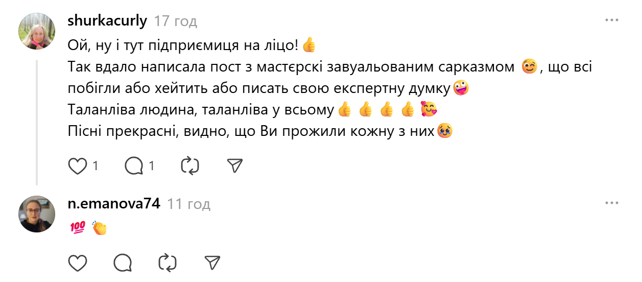 - "Так удачно написала пост с мастерски завуалированным сарказмом, что все побежали или хейтить или писать свое экспертное мнение. Талантливый человек, талантлив во всем";