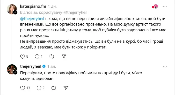 Скандал с концертом Jerry Heil / Скриншот с Threads