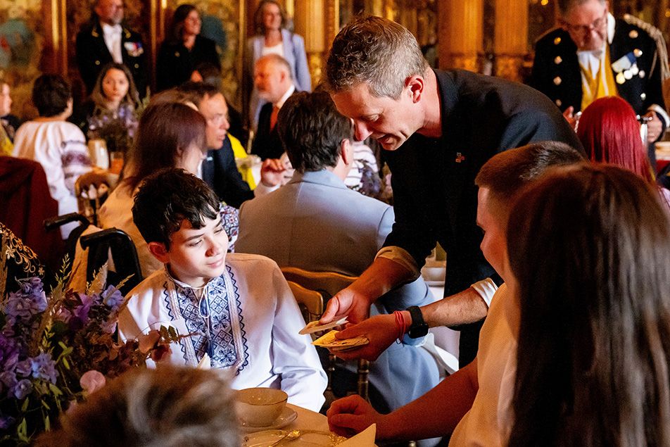 Королева и кронприцесса тепло общались и чаевничали с украинскими детьми, делать совместные фото. А телеведущий и фокусник Тоббе Блом развлекал молодежь разнообразными трюками.