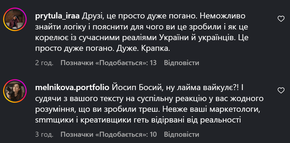 - "Невозможно найти логику и объяснить для чего вы это сделали и как это коррелирует с современными реалиями Украины и украинцев. Это просто очень плохо";