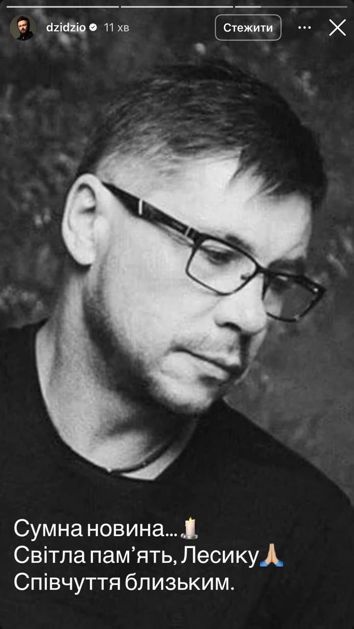 На смерть Лесика отреагировал Михаил Хома (Дзидзьо) в своем Instagram.