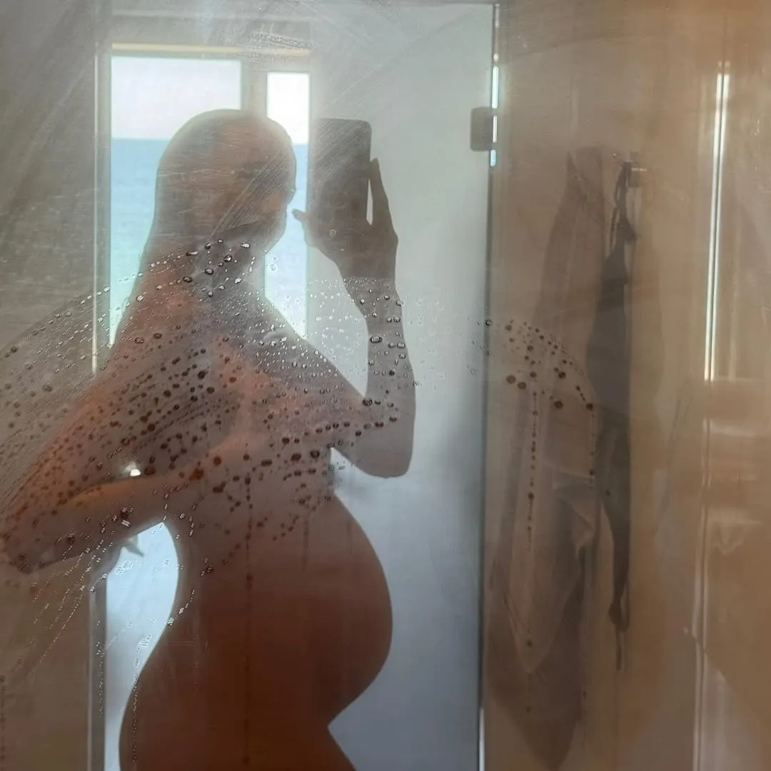 Ведущая опубликовала серию фото, которых ранее не показывала подписчикам. Она показала интимное фото, которое сделала во время беременности, а также кадр из роддома, где позирует улыбающейся, а рядом – избранник Дмитрий Бабчук с новорожденным сыном на руках.