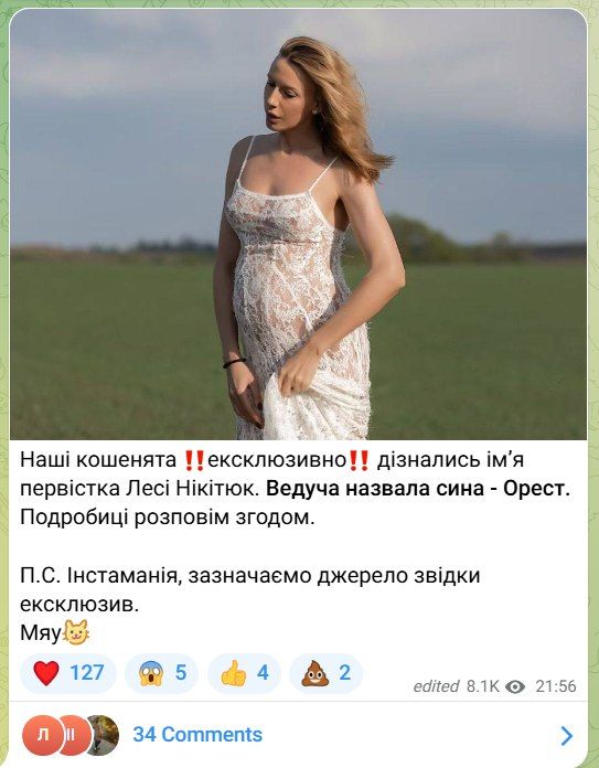 Инсайдер рассказал Богдану Беспалову, что Леся Никитюк назвала сына Орестом. Сама же телеведущая пока не комментирует информацию, которую распространили в сети. Впоследствии блогер пообещал поделиться подробностями.
