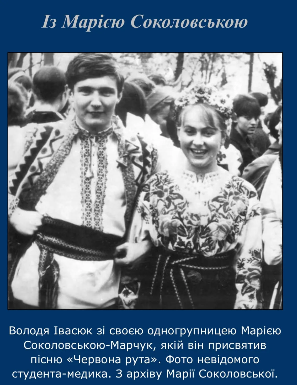 Мария Марчук вспоминала в комментарии изданию "МБ" момент, когда Владимир Ивасюк посвятил ей песню. Это было в 1969 году, когда она училась Черновицком медицинском институте и участвовала в ансамбле "Трембита" и камерном оркестре.