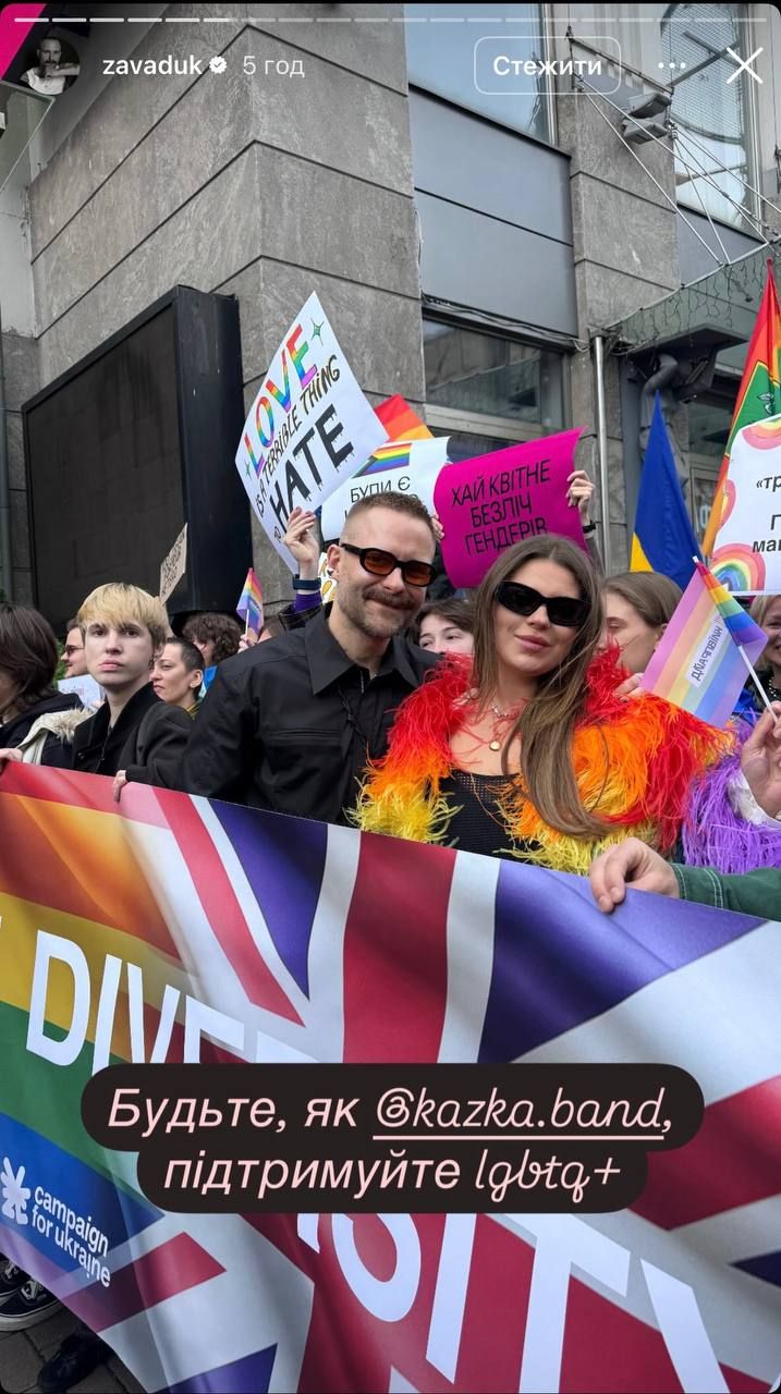 Солистка группы KAZKA Александра Зарицкая также вышла на Марш равенства. Она отметила, что сегодняшний день – очень важен для ЛГБТ-сообщества. Певица, кроме того, заметила, что уже не впервые поддерживает событие.