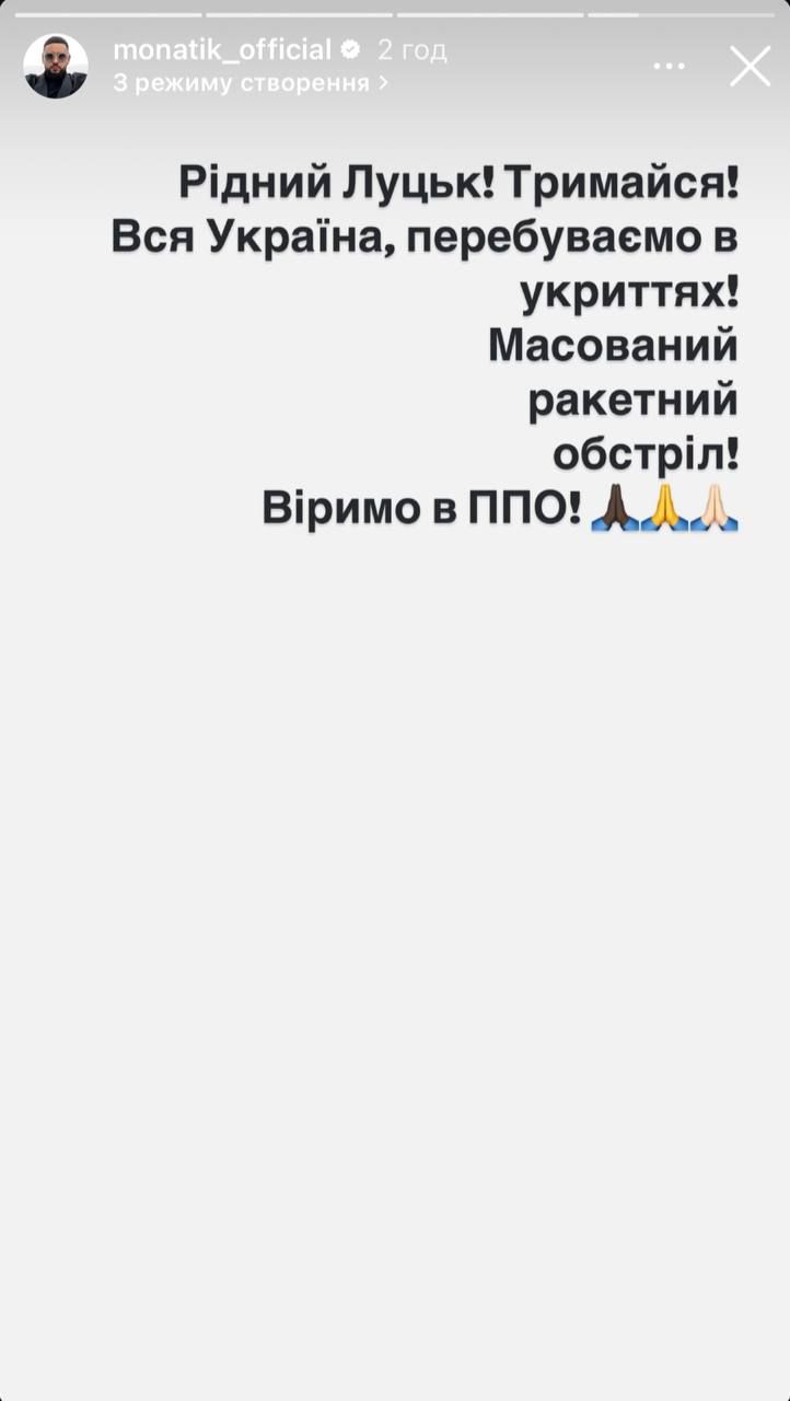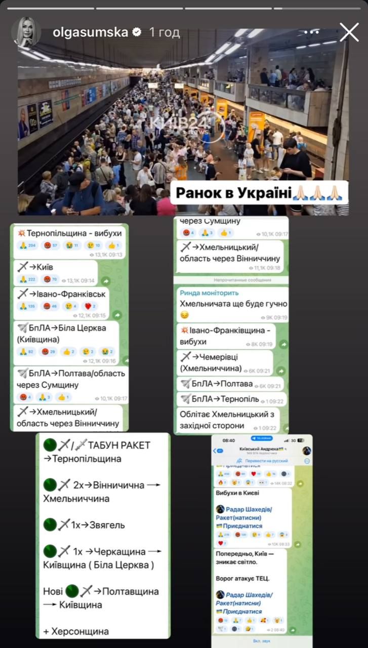 Как звезды отреагировали на массированную атаку ракетами и "Шахедами" / Фото из инстаграм-сториз