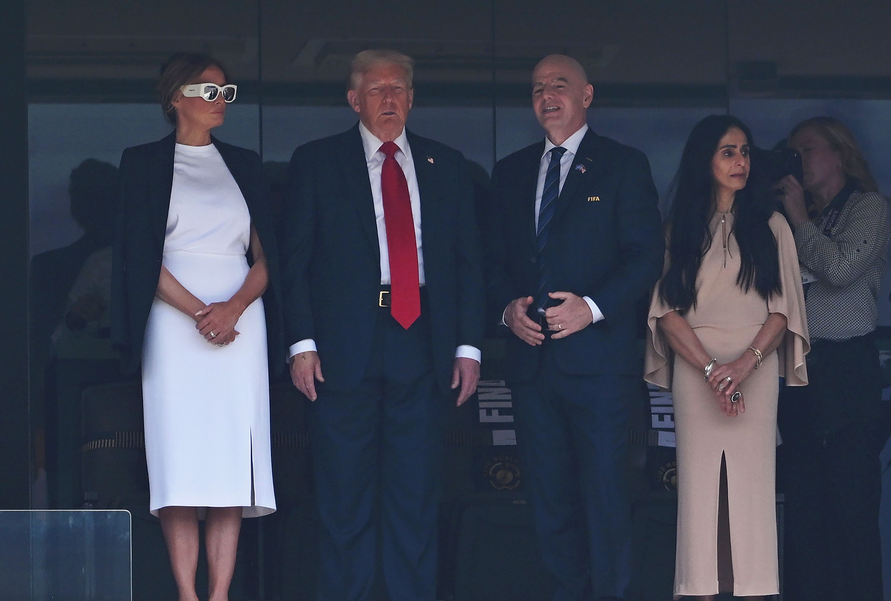 Мелания Трамп смотрела за игрой между "Челси" и "ПСЖ" на стадионе MetLife вместе с мужем Дональдом Трампом, а также в компании президента ФИФА Джанни Инфантино и его жены Лины Аль Ашкар.