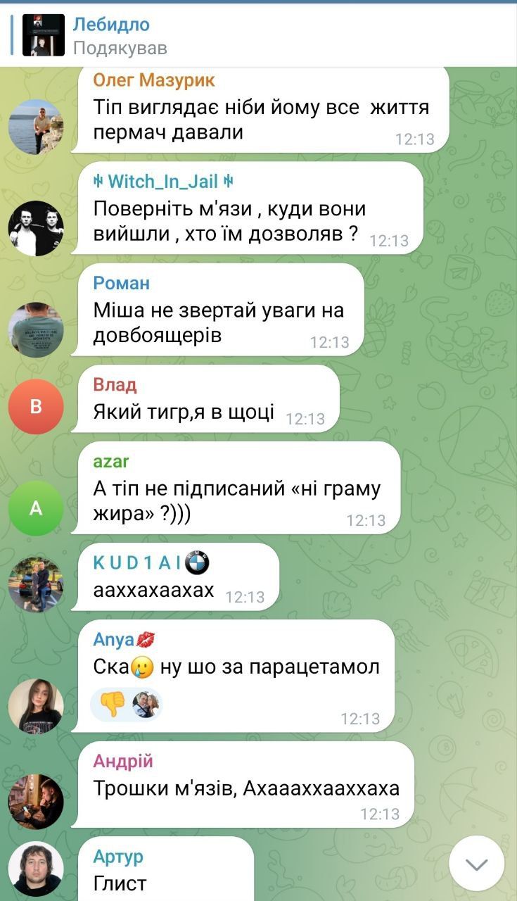 Миша Лебига опубликовал фото парня, который оставил скептический комментарий / Скриншот с его телеграм-канала