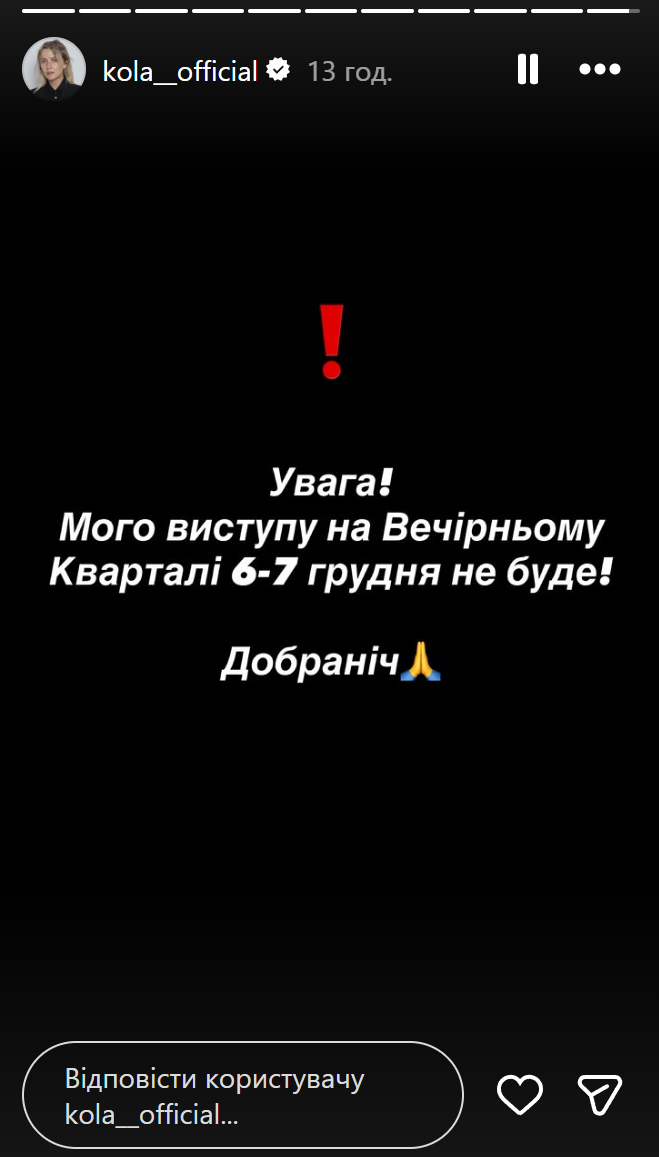 Хор "Гомон", KOLA и Надя Дорофеева не будут выступать на "Вечернем Квартале" 6 и 7 декабря / Скриншоты из соцсетей