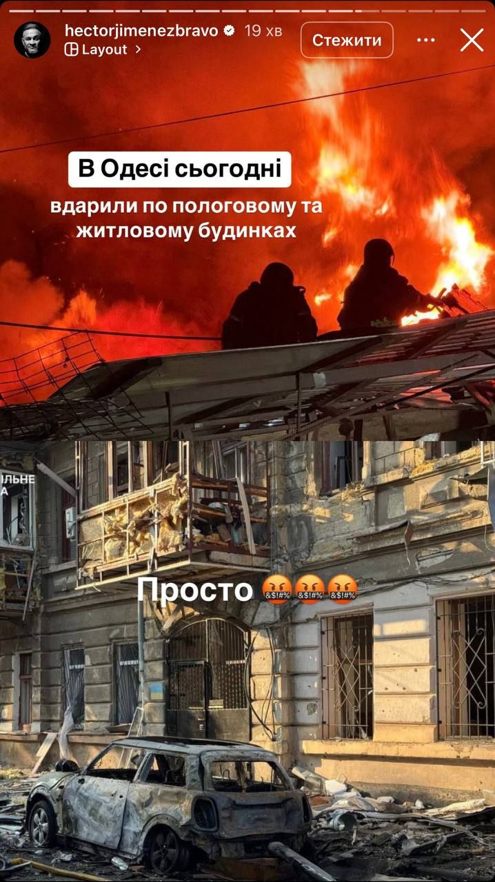Шеф-повар Эктор Хименес-Браво опубликовал в своем инстаграме последствия российского обстрела Киева и Одессы, где есть повреждения роддома, жилых домов и станции экстренной медицинской помощи.