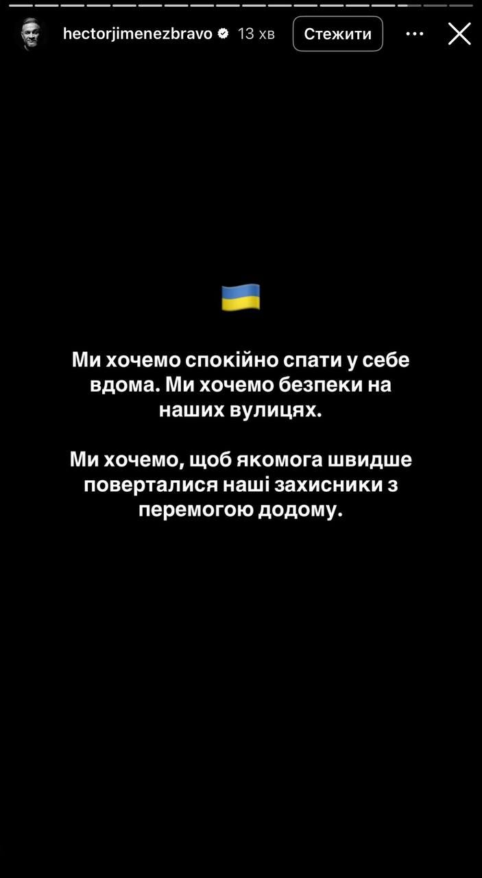 Эктор Хименес-Браво о ночном обстреле Украины / Скриншоты из инстаграма шеф-повара
