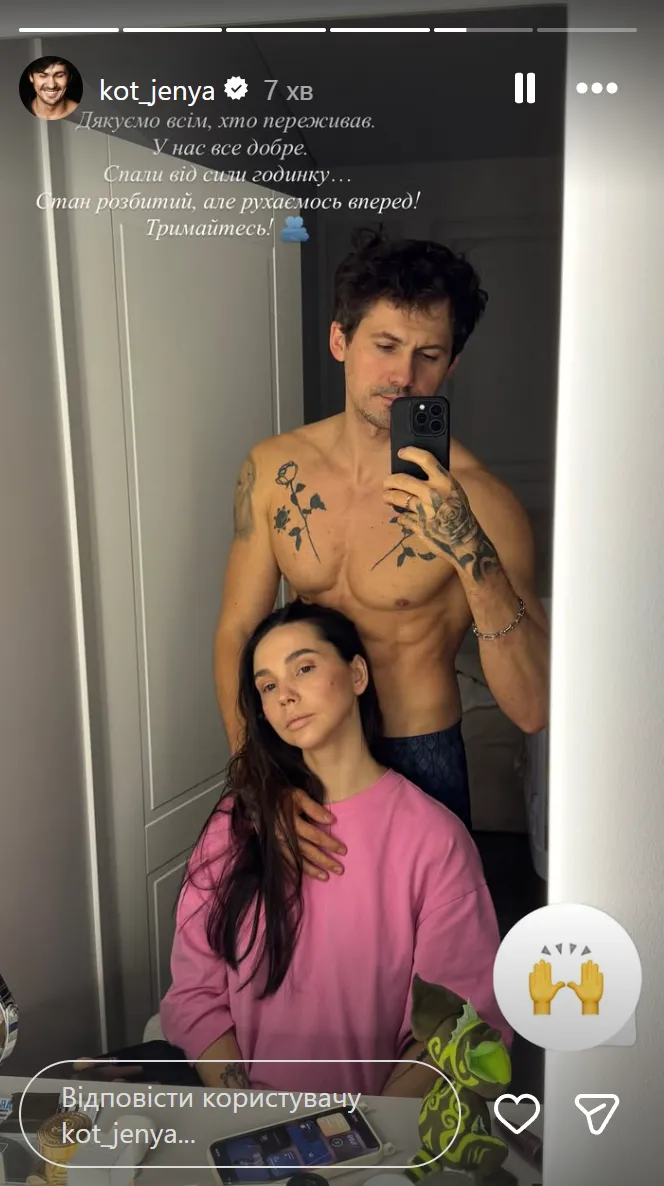 Евгений Кот показал соседний дом, охваченный огнем, и рассказал, в каком они с женой сейчас состоянии / скриншот из инстаграм-сторис