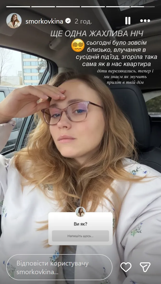 Утром 29 ноября Анна вышла в сторис, опубликовав селфи, сделанное в машине. Она заявила, что прилет был совсем близко к их жилью.