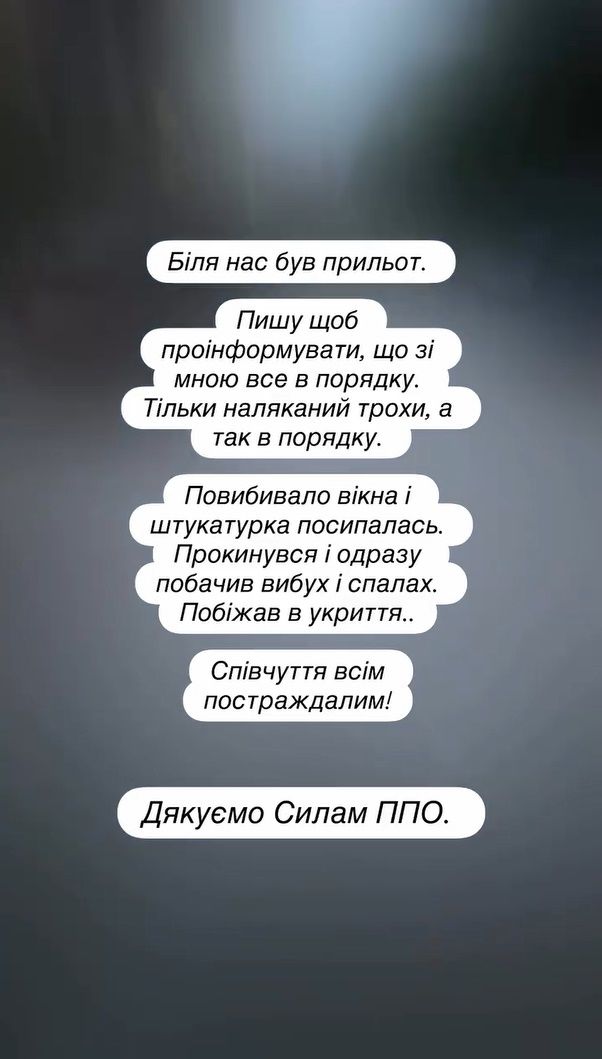 Иван Люленов об обстреле Киева / Фото из инстаграм-сториз