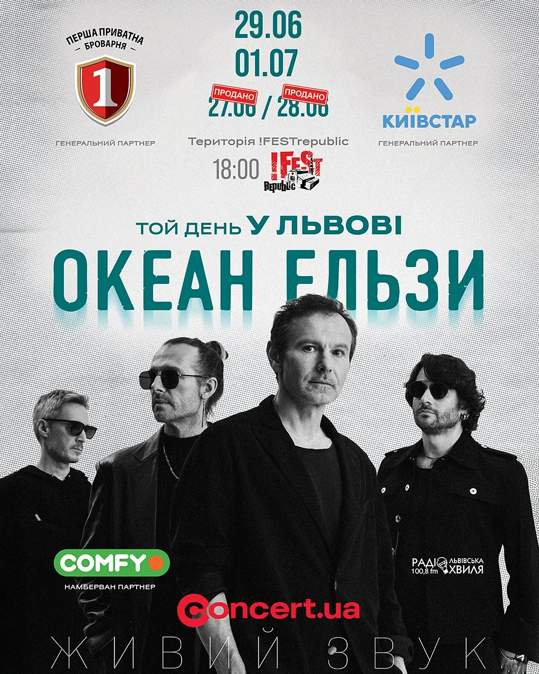 Мы очень рады тому, что можем объявить во Львове четвертый концерт, который состоится на !FESTrepublic 1 июля. Мы чувствуем вашу любовь, вашу поддержку и готовы играть для вас столько, сколько надо. Ждем вас!,