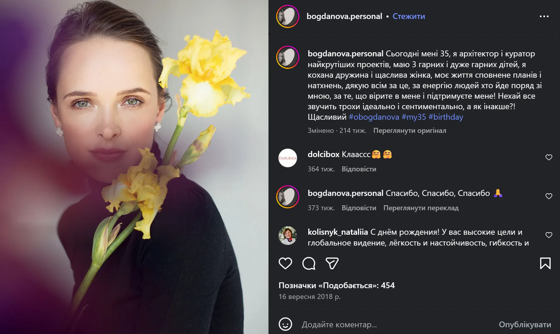 На странице в инстаграме указано, что женщина сейчас живет в Женеве в Швейцарии. В то же время иногда она приезжает в Украину и постит об этом в соцсетях.