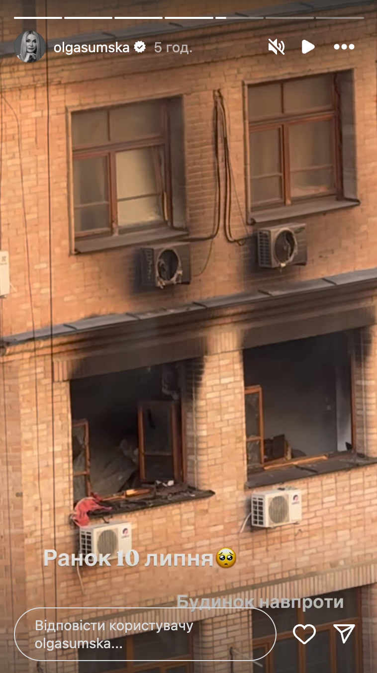 Ольга Сумская показала последствия атаки на столицу / Скриншот из инстаграма