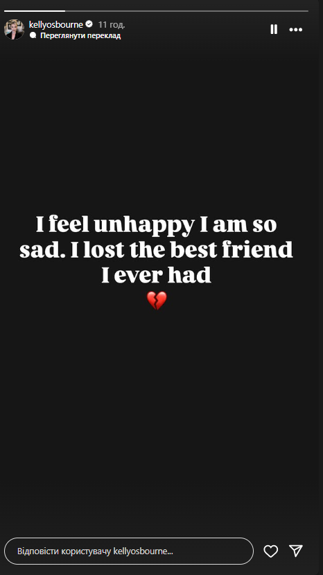 Как дочь Оззи Осборна отреагировала на его смерть / Скриншот из инстаграм-сторис