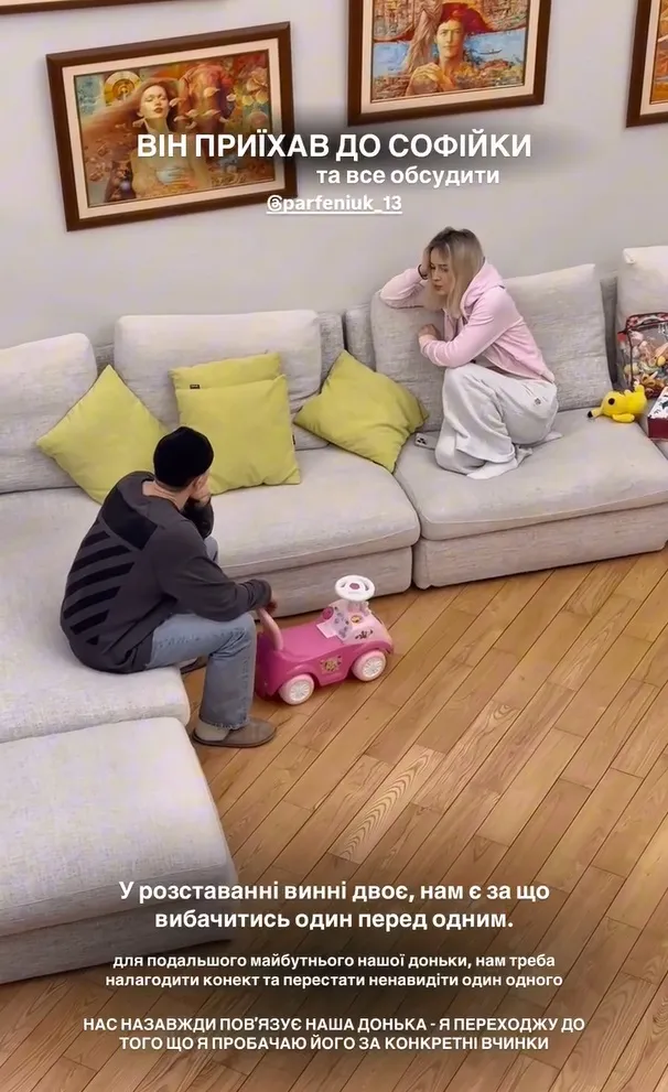 Впоследствии и Симбочка публично высказалась о разводе и обвинила певца в том, что он ее унижал, якобы хватал за горло и волосы во время беременности. Она откровенно рассказала о о ссорах с Parfeniuk и реалиях их отношений.