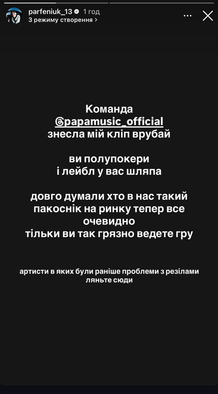 Parfeniuk о лейбле Papa music / Фото из инстаграм-сториз Parfeniuk