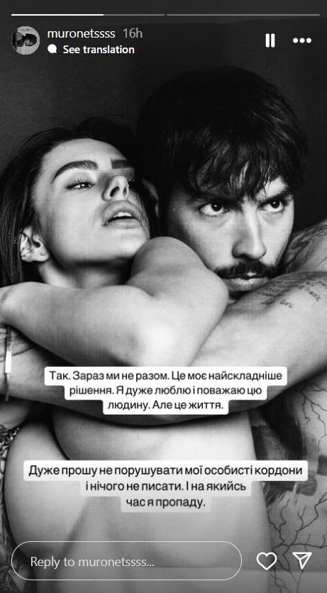 Так, Алина Муронец первой сообщила о том, что она больше не встречается с певцом.