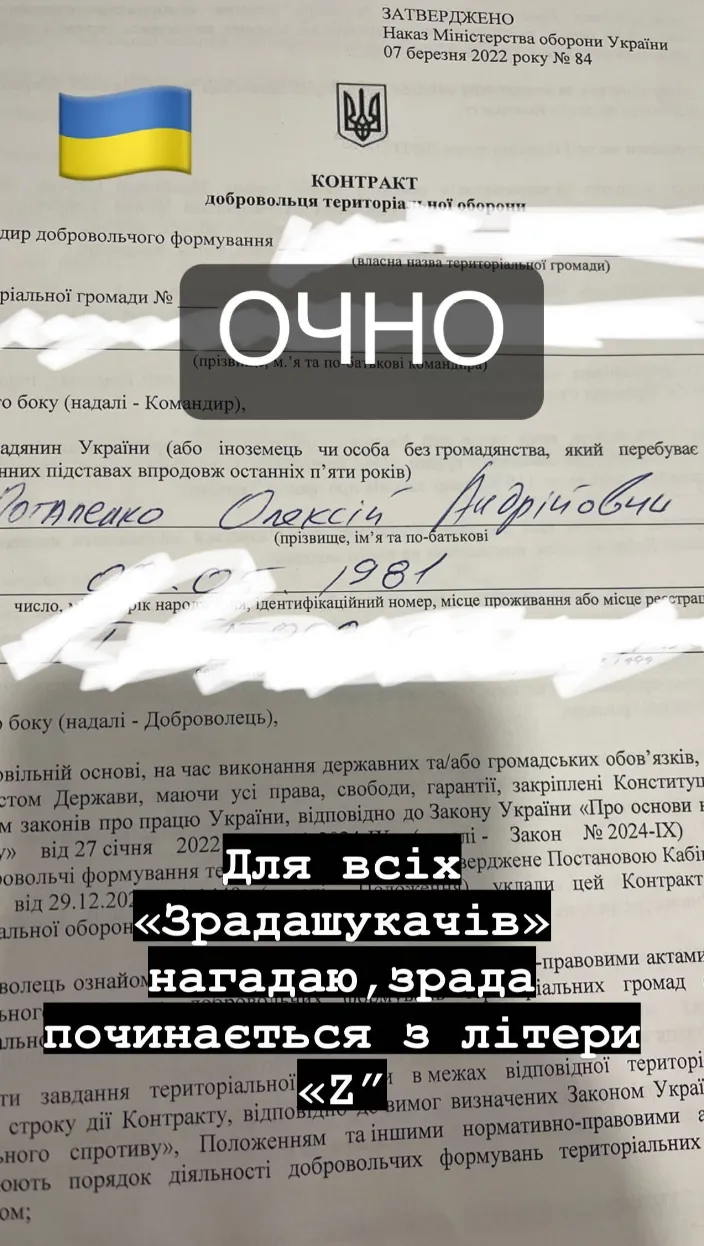 Потап показал заявление о вступлении в ТрО / Скриншот из инстаграм-сторис