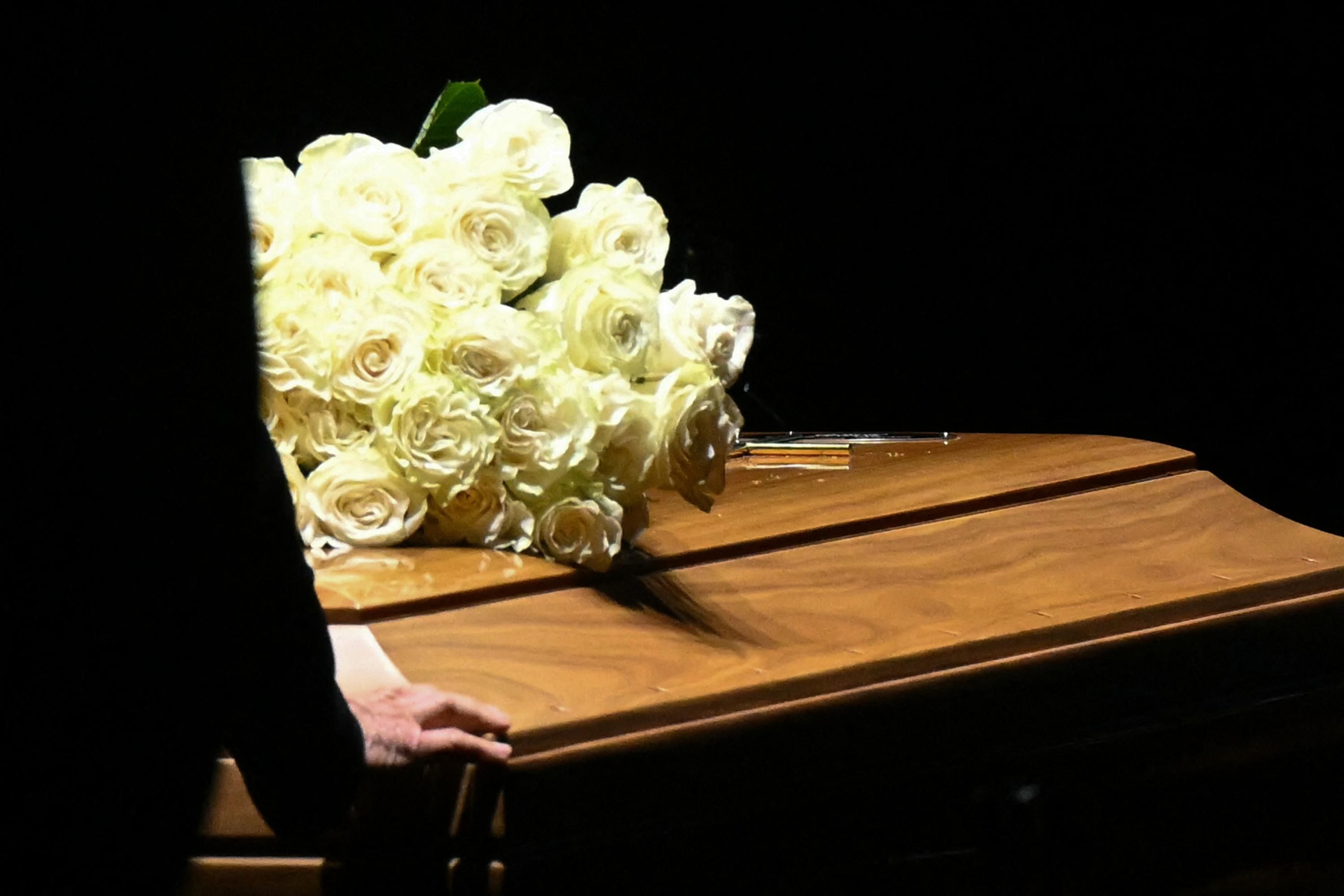 Как сообщает издание, закрытый гроб украшал букет белых роз, вокруг стояли карабинеры. В помещении были ряды свечей, а на фоне тихо играла музыка итальянского композитора Людовико Эйнауди.