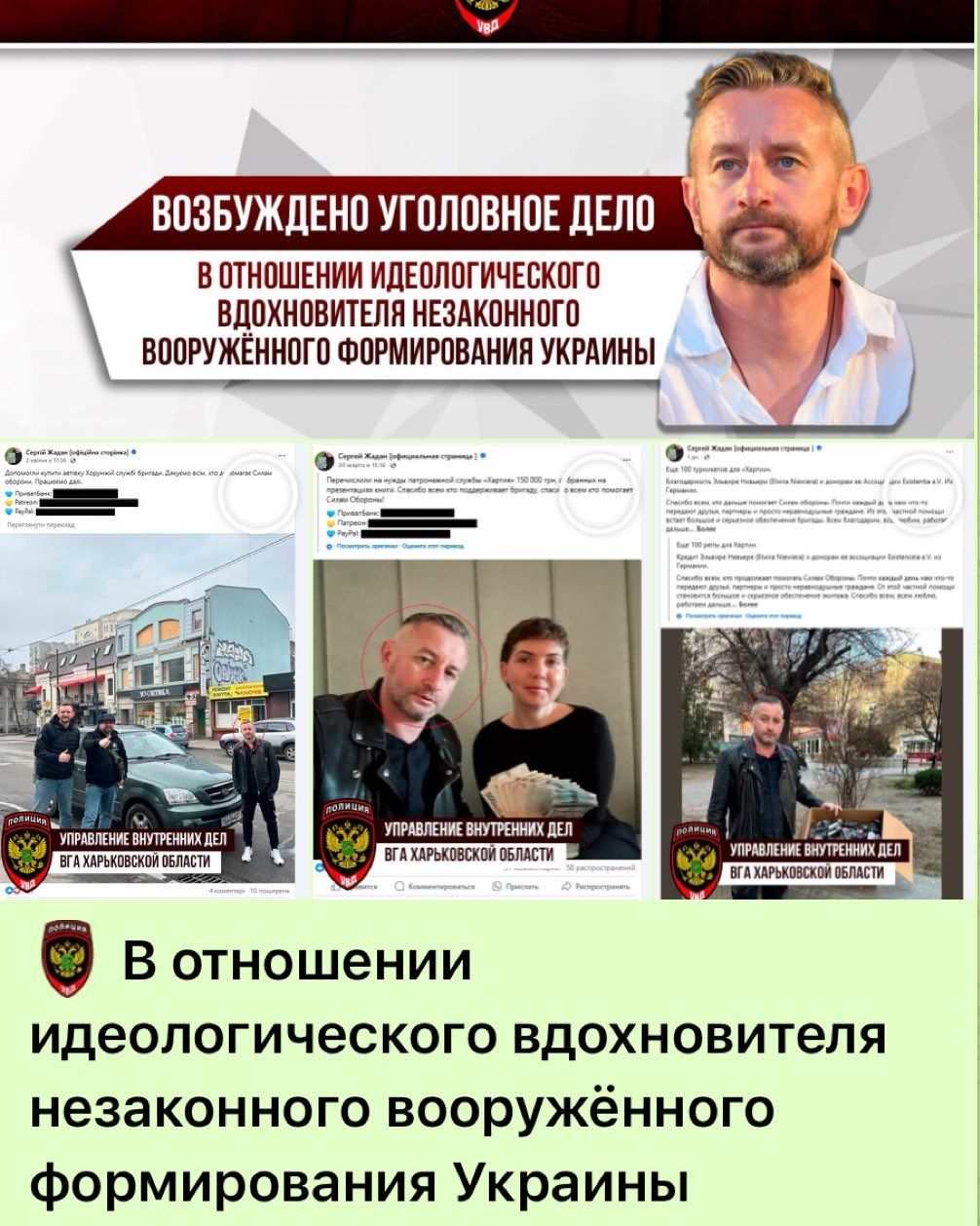 Об этом сообщил сам Сергей Жадан на своей странице в инстаграме, передает Show 24. Он опубликовал скриншоты со страницы так называемого "Управления внутренних дел ВГА Харьковской области".