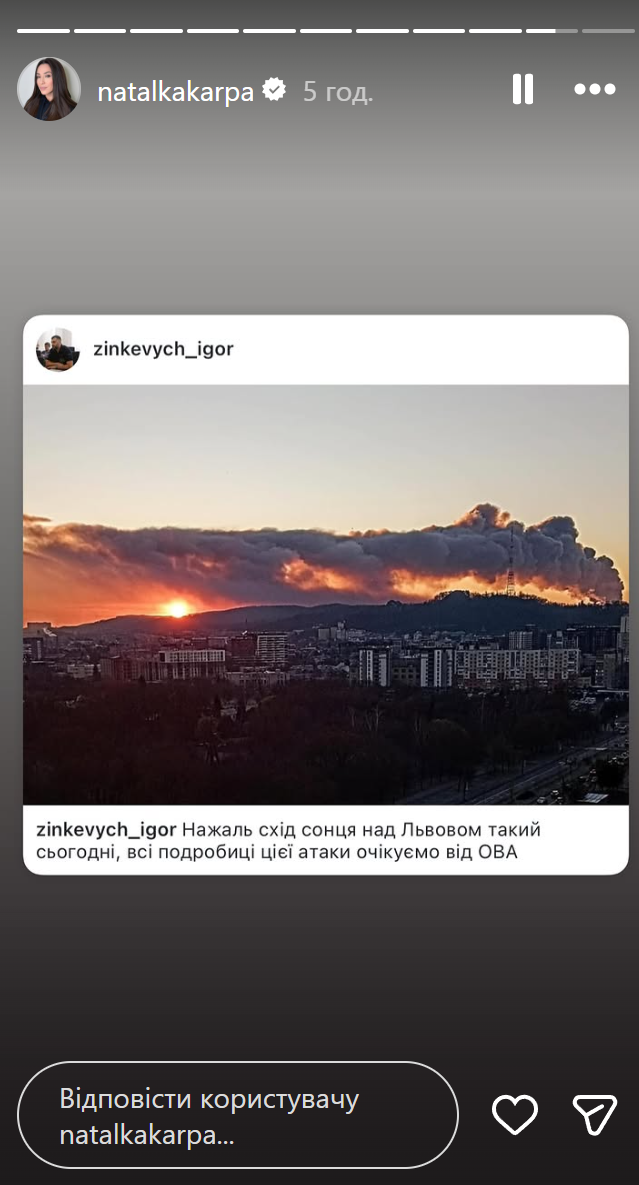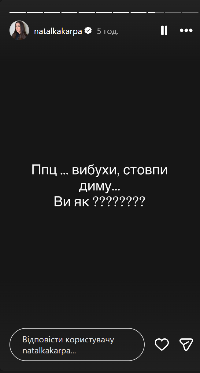 Наталка Карпа отреагировала на ракетный обстрел Украины / Скриншоты из инстаграм-сторис