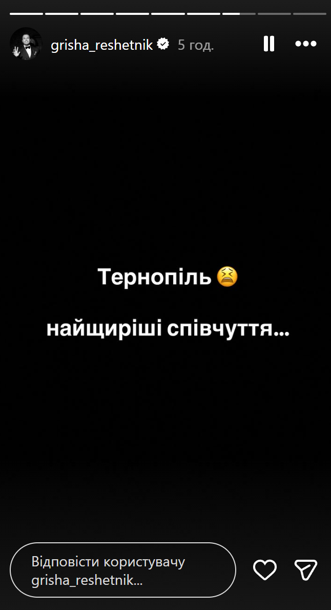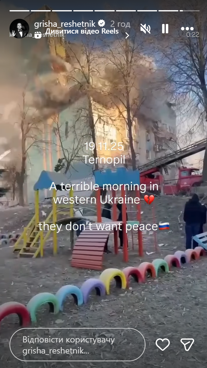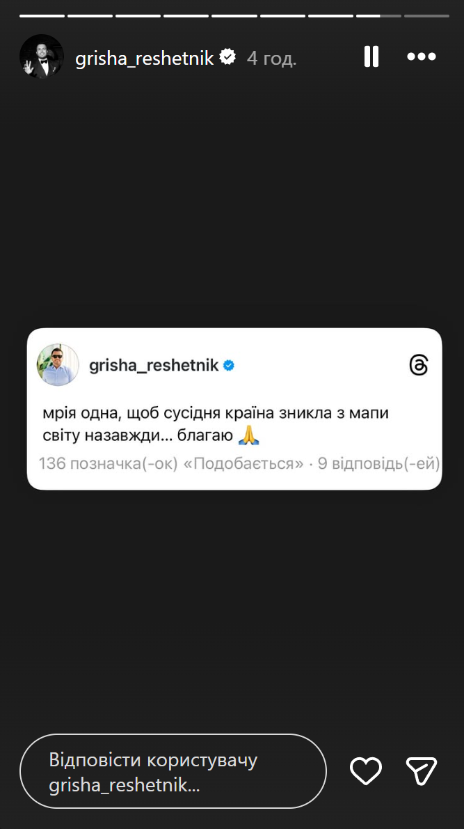 – написал Решетник в инстаграм-сторис.