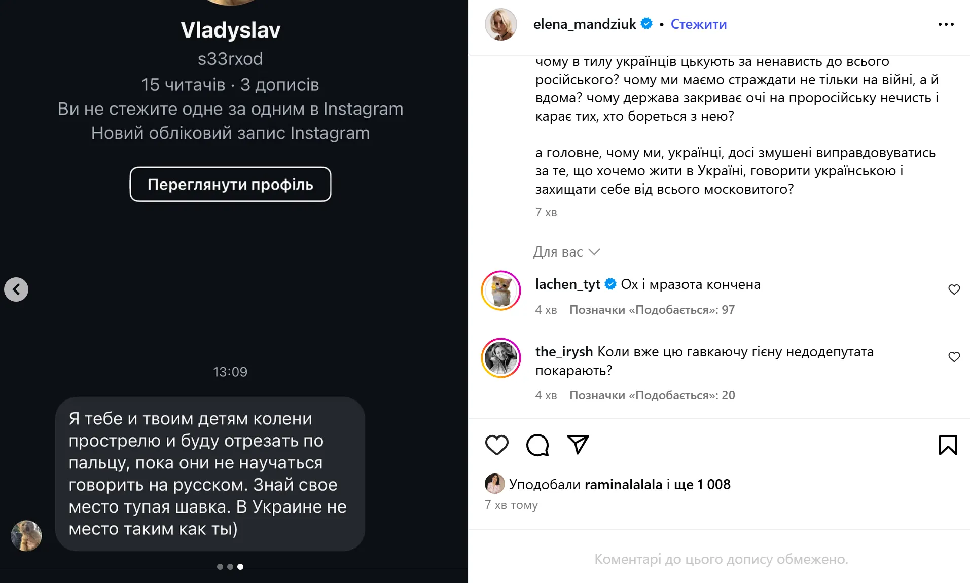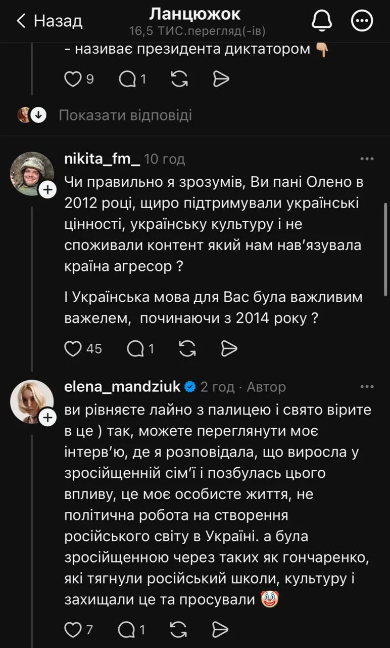 Параллельно в сети появились обвинения, что Мандзюк сама раньше общалась на русском и даже вела соцсети на этом языке.